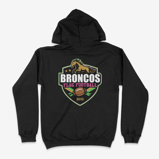 Double Sided Banning Broncos Flag Football Hoodie Pink Accent