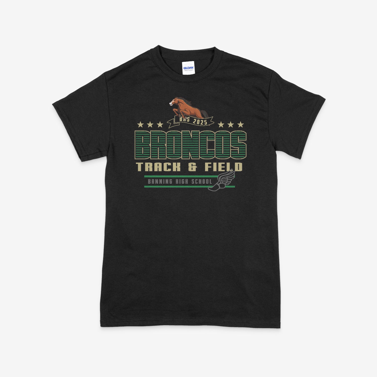 Get ready to sprint past the competition and cross the finish line in style with the latest Banning High School TF 2025 Tee! This bold design will turn heads and leave a lasting impression on the track. Step up your game and represent your team with confidence. Don't just wear a regular t-shirt, show off your fierce spirit and daring attitude with this must-have tee!