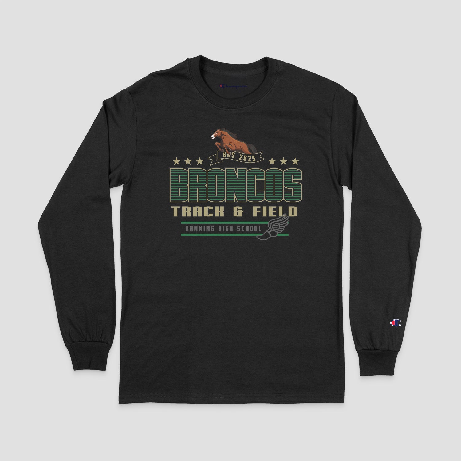 Get ready to sprint past the competition and cross the finish line in style with the latest Banning High School TF 2025 Long Sleeve Tee! This bold design will turn heads and leave a lasting impression on the track. Step up your game and represent your team with confidence. Don't just wear a regular t-shirt, show off your fierce spirit and daring attitude with this must-have tee!