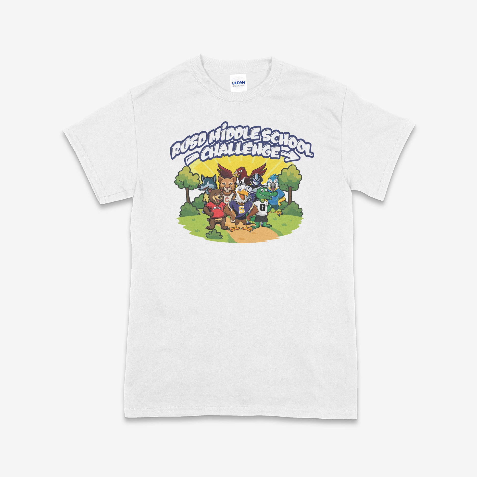 Show your school pride with the official RUSD Middle School Challenge short-sleeve tee! Designed exclusively for this year’s meet, the shirt features a fun, cartoon-style design showcasing each middle school’s mascot proudly representing their team along a cross country course backdrop.